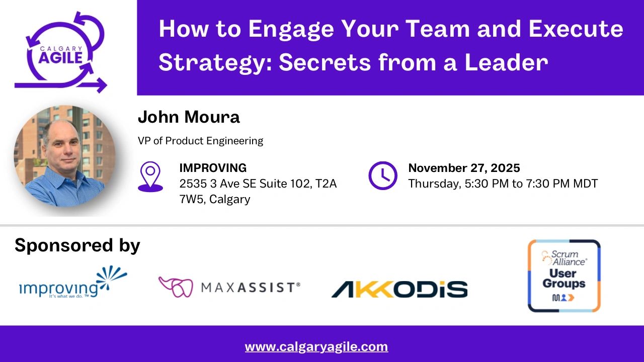 A self-organized group of Agile experts who volunteer their time and experience towards building a Community of Practice in Calgary, and beyond, centered around Agile methods.
